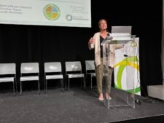 Anschließend folgten zwei inspirierende Keynotes. Elisabeth Winkler, PANNATURA, sprach über „Innovative Konzepte für eine Landnutzung mit Zukunft“ und betonte die Notwendigkeit neuer Ansätze und Technologien in der Landwirtschaft. Sie zeigte auch wie Pannatura bereits jetzt Kreislaufwirtschaft lebt und damit auch erfolgreich wirtschaftet. Ihr Fazit lautete: „Kreislaufwirtschaft ist ein stetiger Prozess. Die Mühe lohnt sich jedoch!“. Bettina Muster-Slawitsch, Leiterin der Forschungsgruppen Wasser- und Prozesstechnologien am Institut für Nachhaltige Technologien in Gleisdorf, präsentierte in ihrer Keynote „Schlüsseltechnologien für die Kreislaufwirtschaft: Beispiel Lebensmittelreststoffe zur Proteingewinnung“, innovative Lösungen zur Nutzung von Reststoffen. Sie stellte hier unter anderem den Versuch vor, vergorenen Biertreber als Torfersatz im Erwerbsgartenbau einzusetzen.
