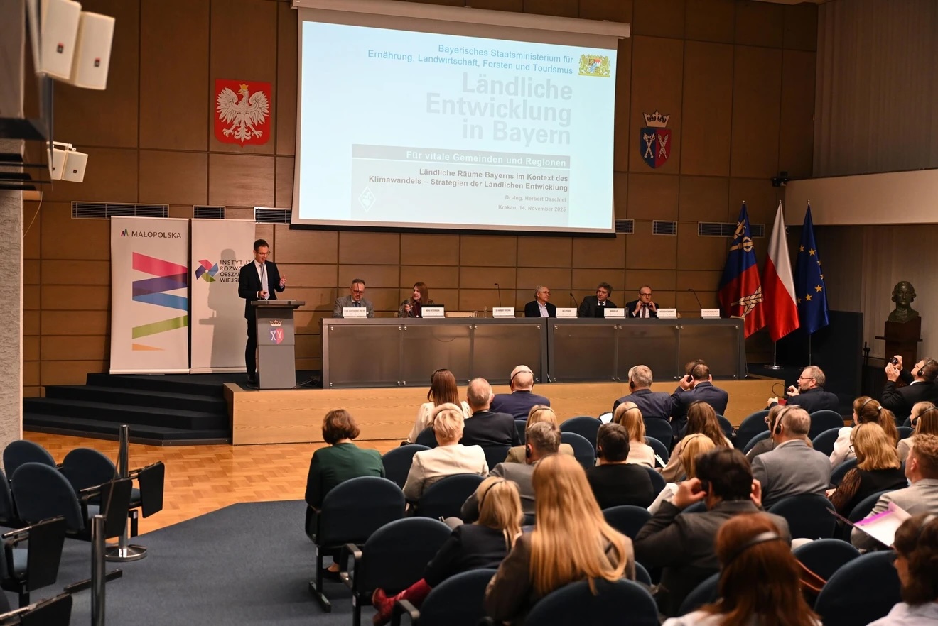Die internationale Fachtagung „Moderne Entwicklung ländlicher Räume – Lebensqualität und Entwicklung im Zeitalter klimatischer Herausforderungen“ brachte am 14. November 2025 Expert:innen aus Österreich, der Schweiz, Bayern und Polen im Kongresszentrum der Universität für Landwirtschaft in Krakau zusammen. Im Zentrum der Veranstaltung standen zentrale Zukunftsfragen ländlicher Regionen: Wie können nachhaltige Entwicklung, Klimaanpassung und resiliente Infrastrukturen im ländlichen Raum gestärkt werden? Die Teilnehmenden beleuchteten dazu unterschiedliche Herausforderungen und konkrete Lösungsansätze – von regionaler Wertschöpfung bis hin zu neuen Strategien für widerstandsfähige Gemeinden.